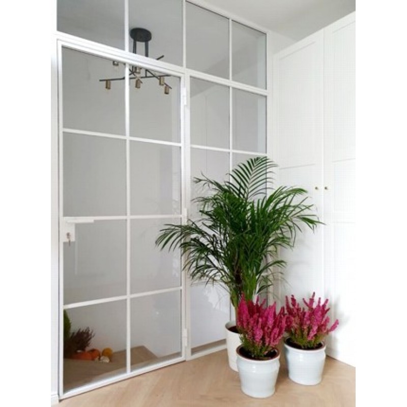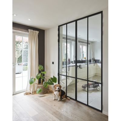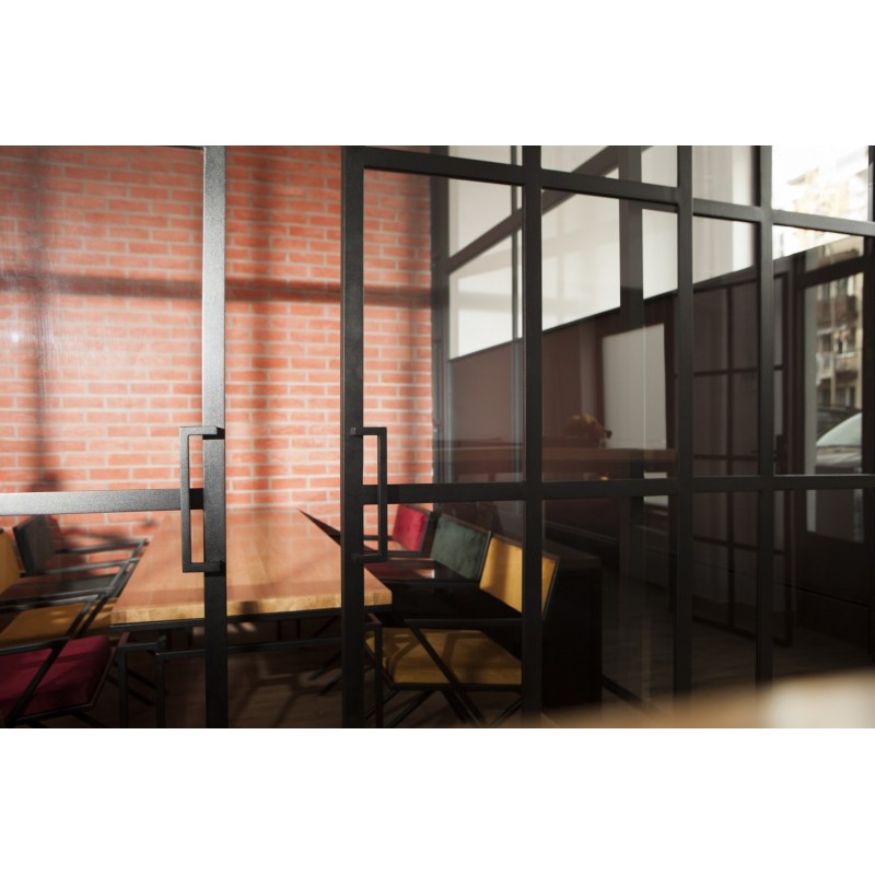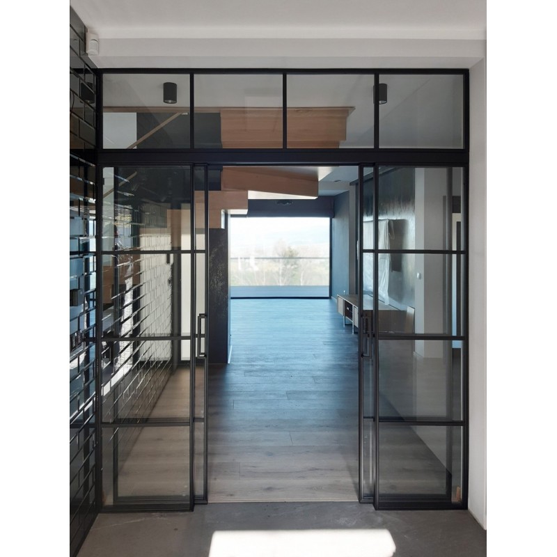 Poctivá konstrukce: Rám i vnitřní dělení tvoří subtilní, ale pevné ocelové profily. Z obou stran vypadají dveře identicky – nepoužíváme žádné nalepené imitace.